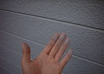 塗膜(ペイント)の劣化。塗膜をさわって、白い粉が手に付着する状態です。